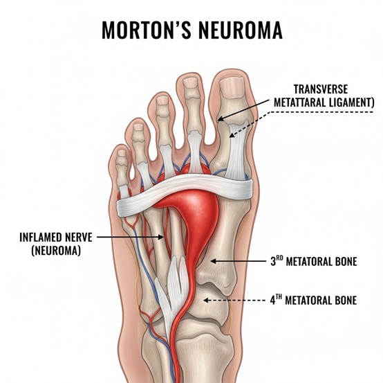 אם אתם מרגישים כאב שורף בכריות כף הרגל, עקצוצים באצבעות, או תחושה מתמדת כאילו אתם דורכים על גולה קטנה או קפל בגרב (בעיקר בין האצבע השלישית לרביעית) – כנראה שאתם סובלים ממורטון נוירומה. זהו מצב שבו עצב נלחץ בין עצמות המסרק, מתעבה ויוצר דלקת חריפה.